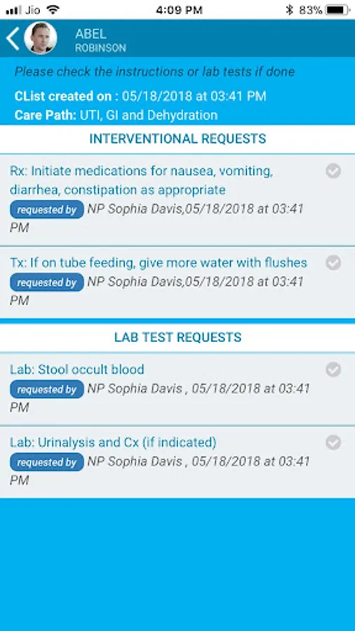 Smart Phone based secure, HIPAA compliant, structured texting platform for Physicians and Nurses to collaborate effectively, make informed decisions, leading to connected care and enabling the healthcare continuum in Hospitals, Physician Groups, Skilled Nursing Facilities, Assisted Living, PACE programs and Home Health. Physicians can configure structured checklists for Nurses to mimic their train of thoughts on assessments while Nurses can configure templates for standard workflows, thus minimizing errors and delivering quality.
