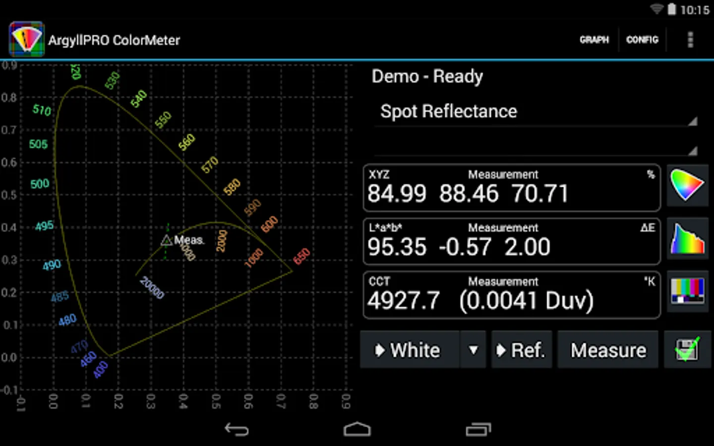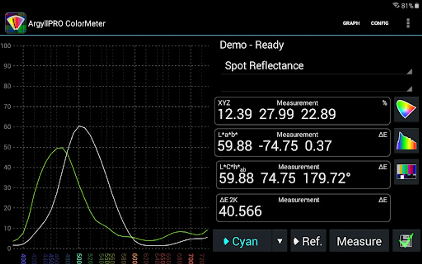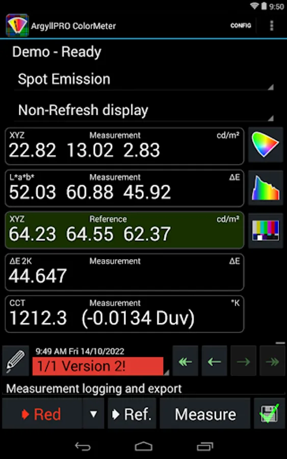 This Demo version of ArgyllPRO ColorMeter has some reduced functionality.