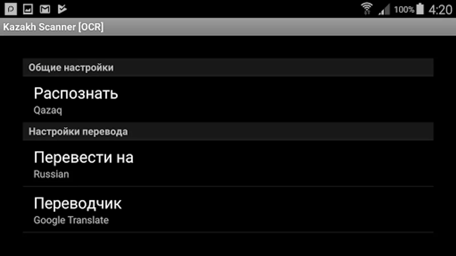 The program allows the camera to recognize the printed text in the Kazakh language and transfer it to the translator of the text Google Translate.