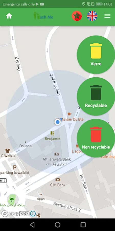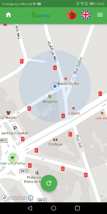 The application has a vocal and graphic navigation system to guide you to the selected trash bin, the guidance system is available for the 3 modes (pedestrians, cyclists and motorists).