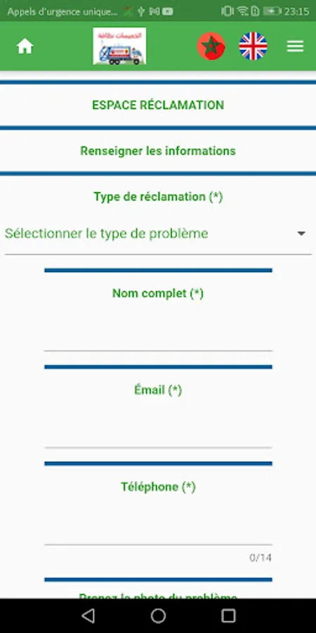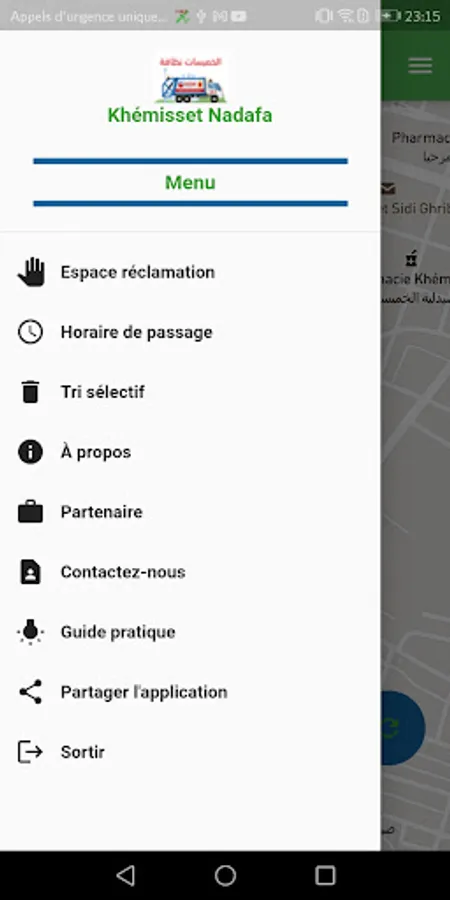 Khémisset Nadafa is a mobile application developed by ATS which firstly allows its users to locate the nearest street furniture by displaying a map of the city based on the current geographical position of each user, it also allows complaints to be reported. observed on the state of the public road, by attaching a photo of the anomaly taken in real time through the application as well as the description and the geographical position of the latter, this report will then be automatically sent to the officials of the municipality concerned and then to the delegated cleaning service provider to process it.