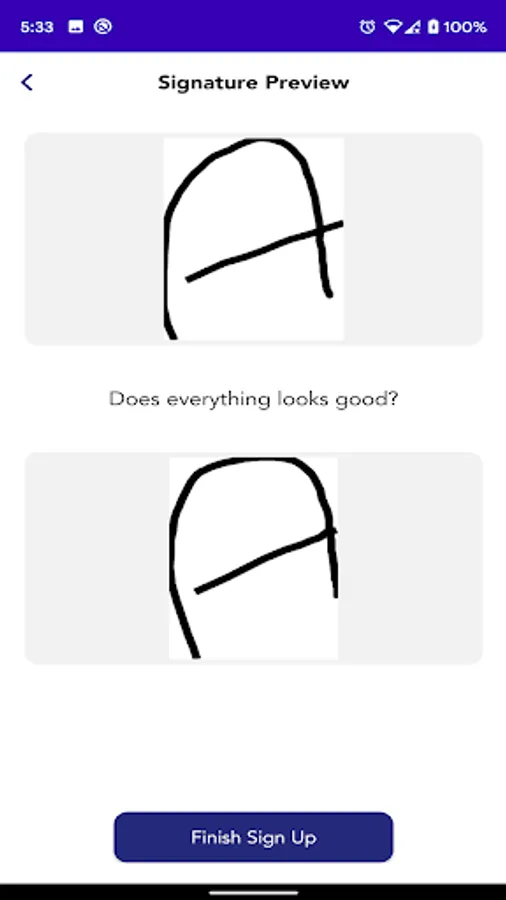 * First time every sign in with actual Sign IN, Thats right with our cutting edge OCR and ML Curves. Simply sing up with ur Signature ( no password in the Signup process ) and Login.