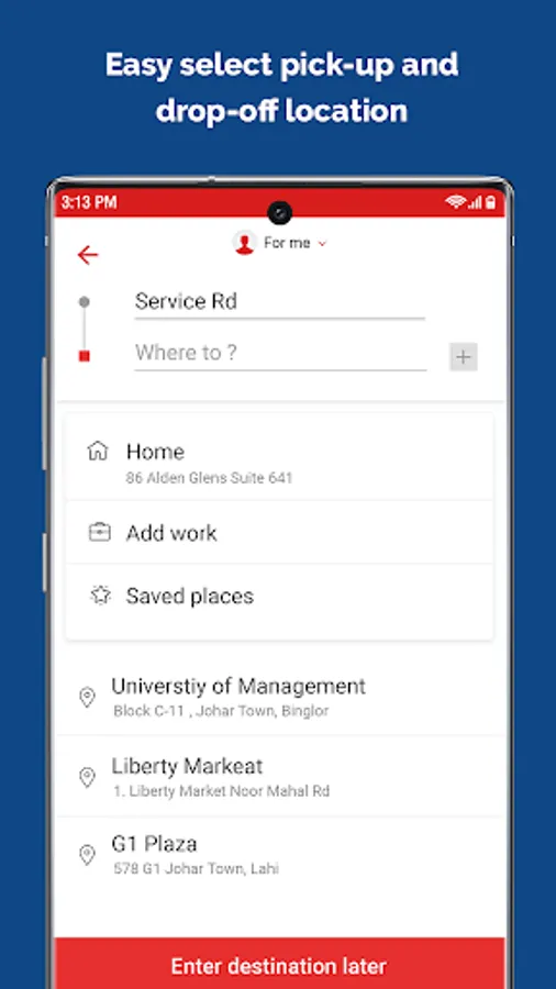 -Open SwiftRyde app and select where you want to go