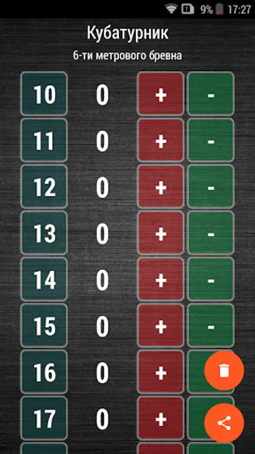 Application for calculating the cubature of a 6-meter log. The application is very convenient in the field work. The buttons are large and vibrate when pressed. Very pleasantly tactile.