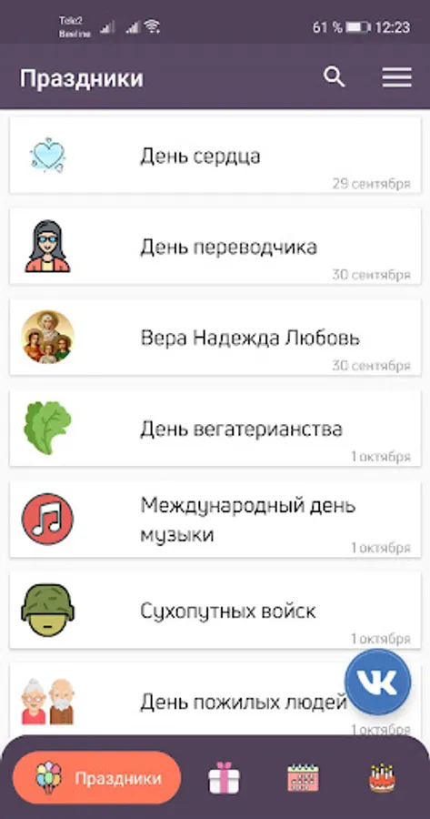 The catalog of our application contains hundreds of cards dedicated to dozens of different holidays. You can wish your dear people a Happy New Year, a Happy Birthday, from February 23 and March 8, with graduation, Maslenitsa, their professional holiday, Children's Day, and many other solemn occasions. Even if there is no holiday today, but you still want to please your loved ones, you can choose a postcard according to the day of the week or from the “Every Day” section.