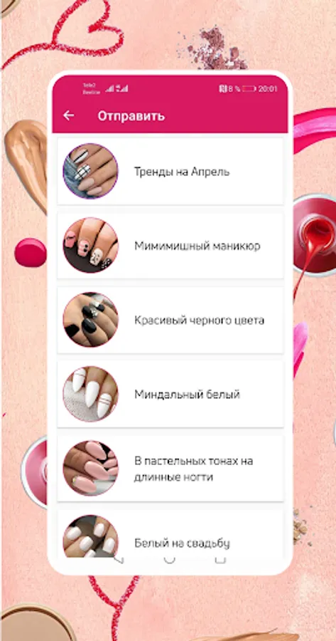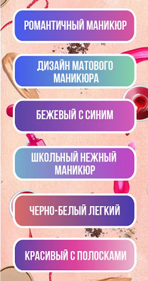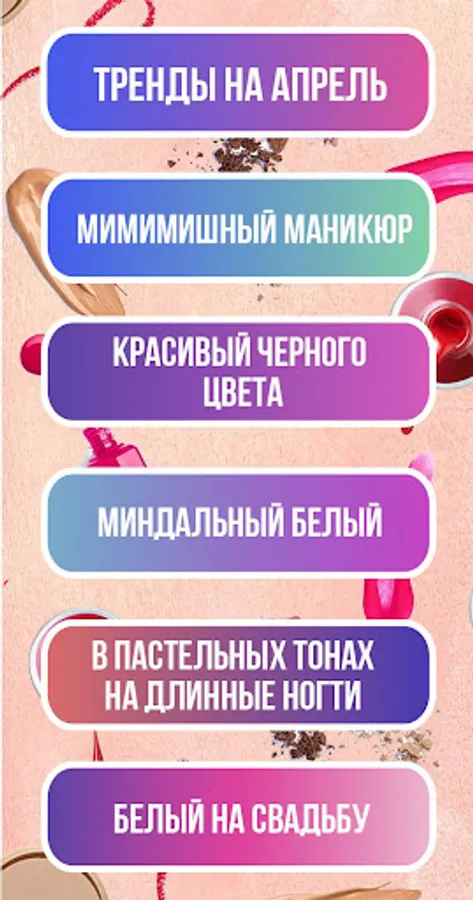 Using the application, you can pick up a nail design even on the way to the master, if you suddenly forgot to do it in advance. Conveniently. You open your phone, launch the app, and while you're on public transport, you choose manicure ideas that match the length of your nails, shape and personal preferences.