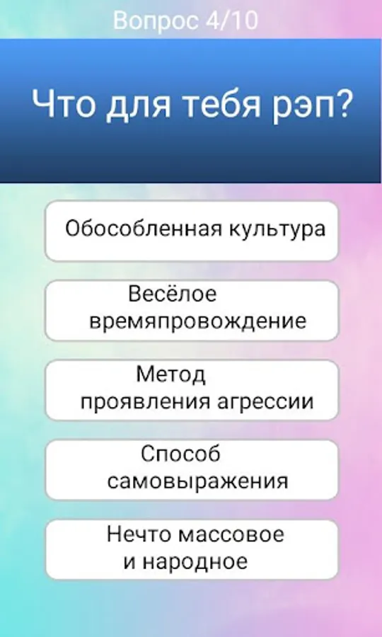 In this test, you will find many exciting questions and a whole variety of 10 results.