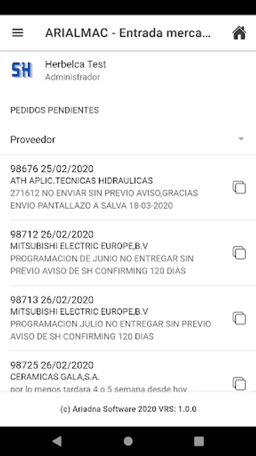 AriAlmac allows managing the taking of inventory and the entry of merchandise in warehouses by communicating with the AriGes application.