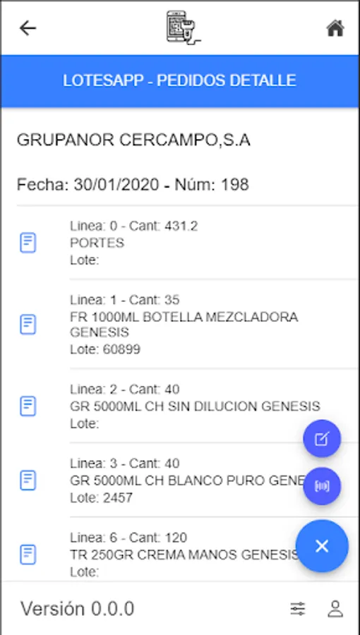 The application allows in the preparation of an order and by reading QR codes on the article label, to be able to include in each of the lines the lot to which the product belongs