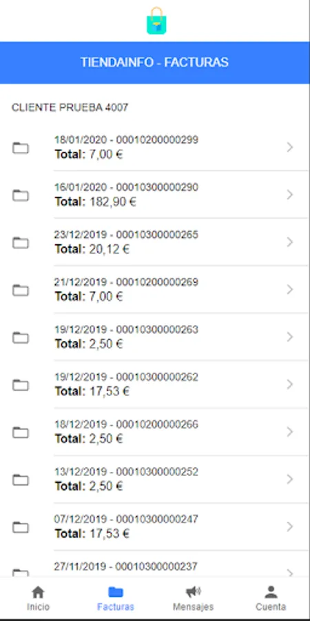 TiendaInfo allows customers of an establishment to consult the tickets and invoices issued by the associated store.
