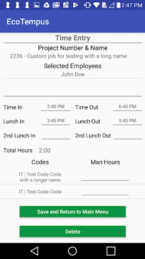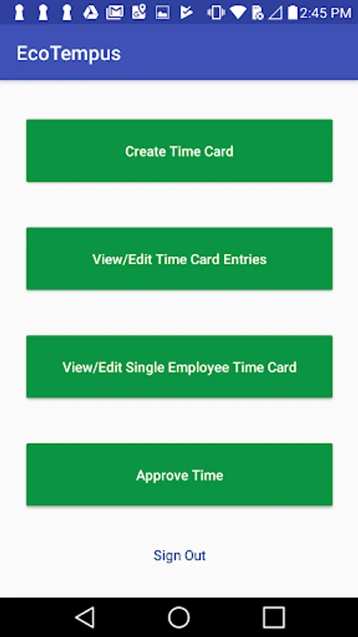 EcoTempus main focus is managing everything related to time cards, from time cards creation to edition and approval processes. Time cards can be created manually or with the time stamping functionality, which includes geo-location recording.