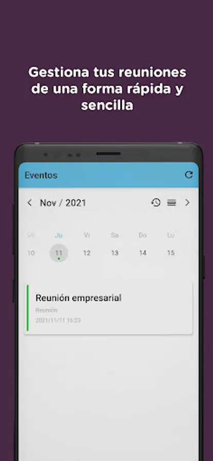 Likewise, create the company users and grant them different roles, for the use of the rooms. Non-administrator users will be able to download the mobile APP, to receive meeting notifications, create new events in the rooms already created in the organization, create reminders and special dates, create meetings.