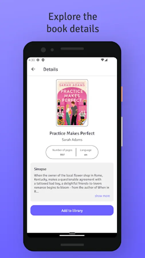 - Detailed Book: Dive into book details, including descriptions, author's name, language, and more. Never miss a beat with handy timestamps on your reading sessions.