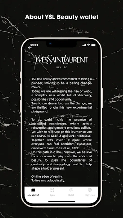 YSL Beauty Wallet will power your web3 journey and make it easy, safe and seamless to store your YSL Beauty NFTs and unlock exclusive experiences.