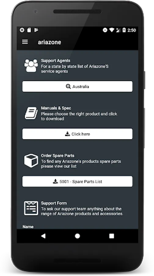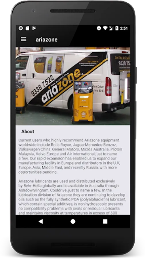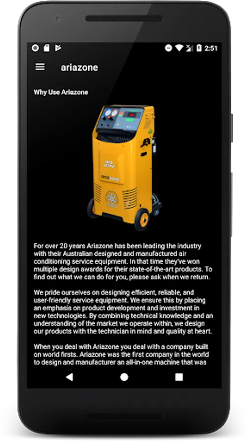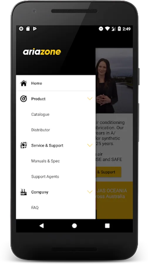 The Ariazone app provides infomercial videos, product information, product catalogues, product user manuals and easy access to all their distributors and supports agents.
