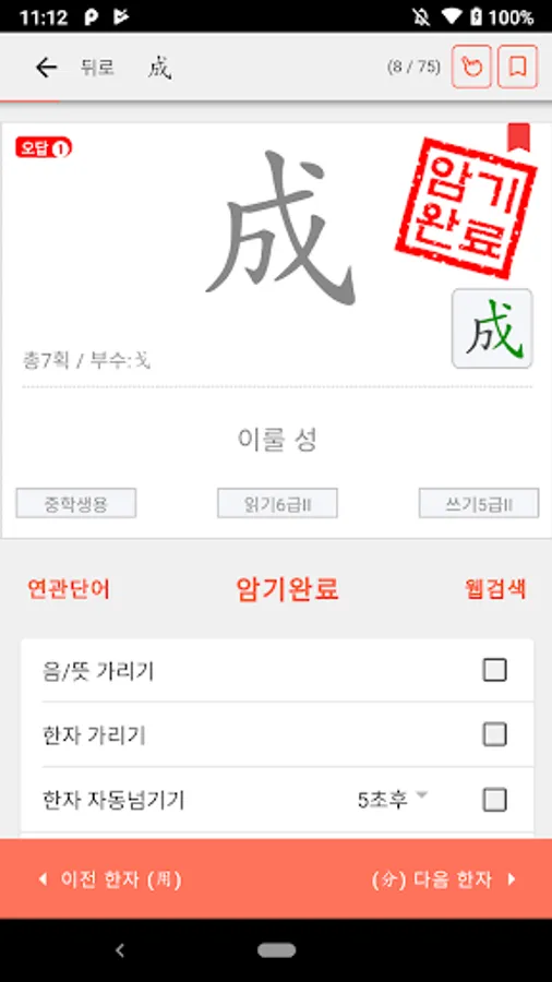 * 한자공부 음과 뜻 가리기, 한자 가리기 기능