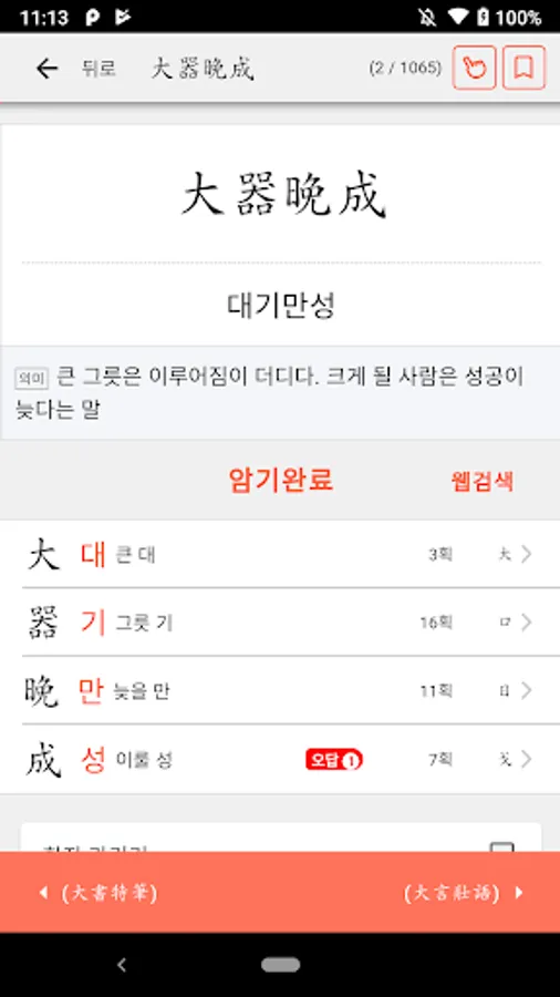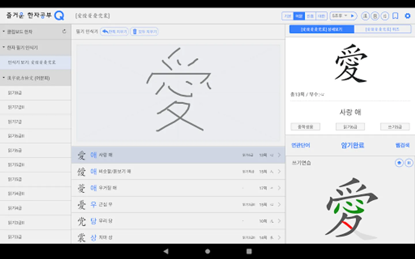 * 한자 필기 인식기로 모르는 한자 써서 찾기 지원 (프리미엄 기능)