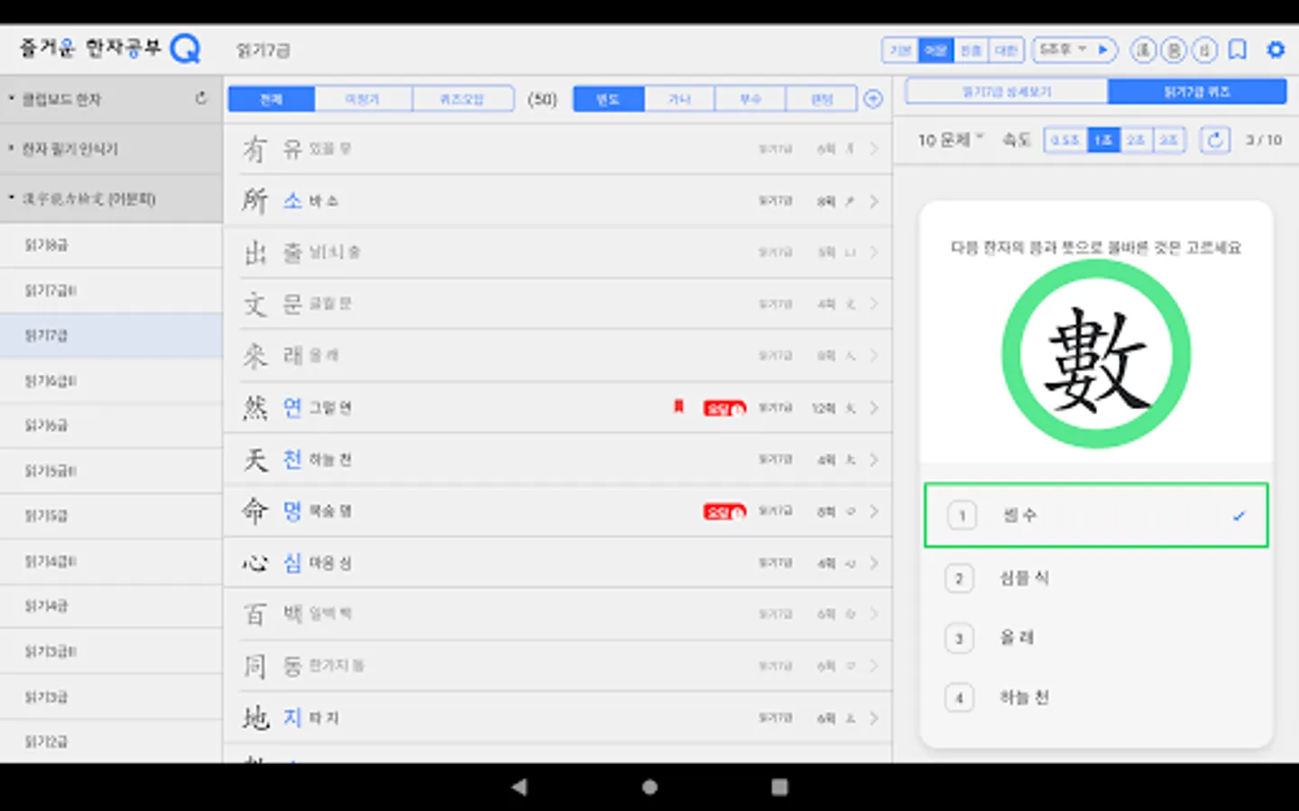 * 한자 학년 난이도별 한자 지원 (고등학생용, 상용한자, 확장한자는 프리미엄 기능)