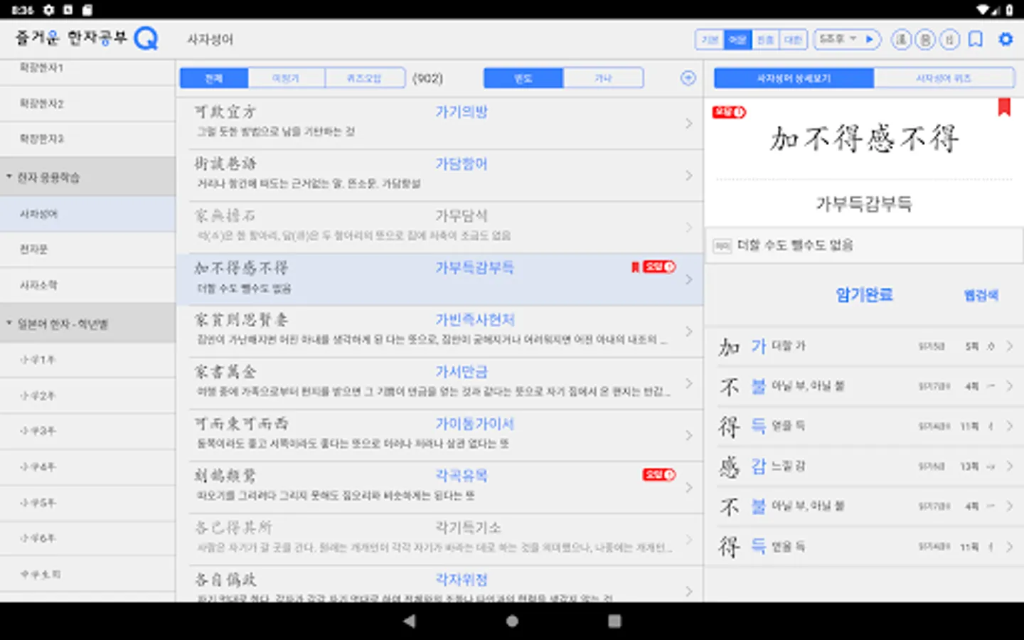 * 한자단어 사자성어, 천자문, 사자소학 지원 (프리미엄 기능)