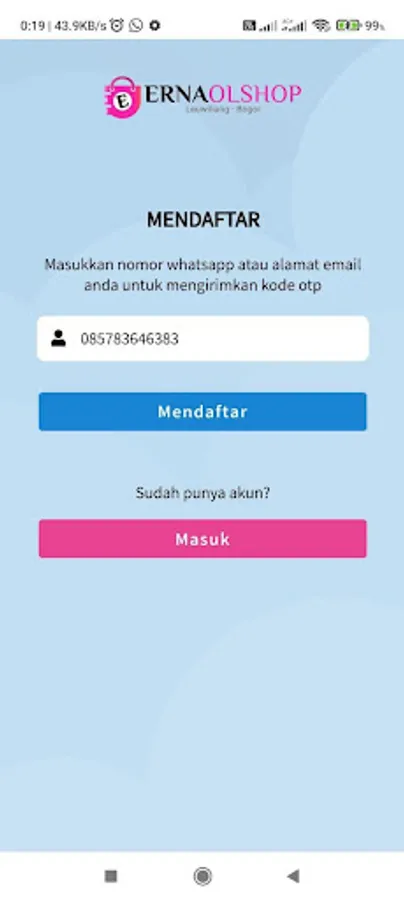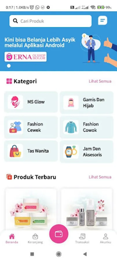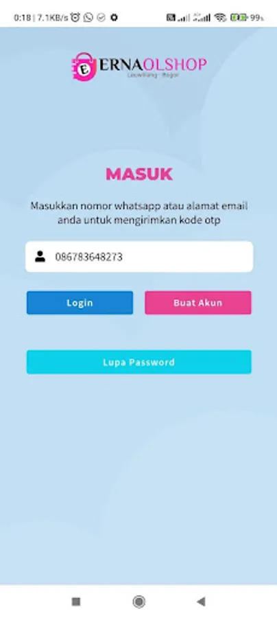 The Erna Olshop application is presented to provide convenience for customers in transactions ranging from choosing products, shipping, and payment methods.