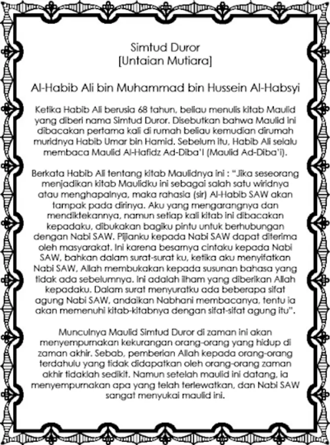 The emergence of Mawlid Simtud Duror at this age will refine shortage of people who live in the last days. Therefore, the gift of God to those who passed were not obtained by those last days is not little. But after this birthday came, he accomplished what has been missed, and the Prophet really liked this birthday.