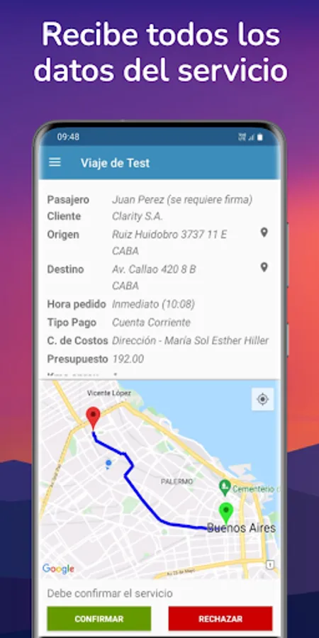 It allows you to receive an instant alert with the trip data, send your GPS location during the trip to be consulted from the web application. It also allows the driver to manage their data, view service history, account summaries, etc.