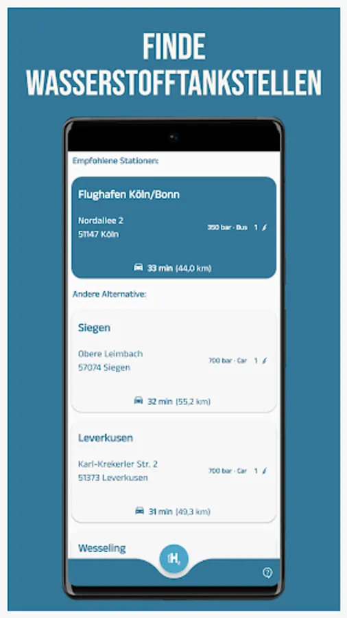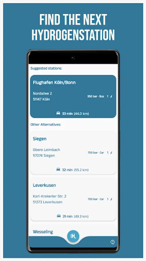• Find nearest Hydrogen station for your hydrogen vehicle.