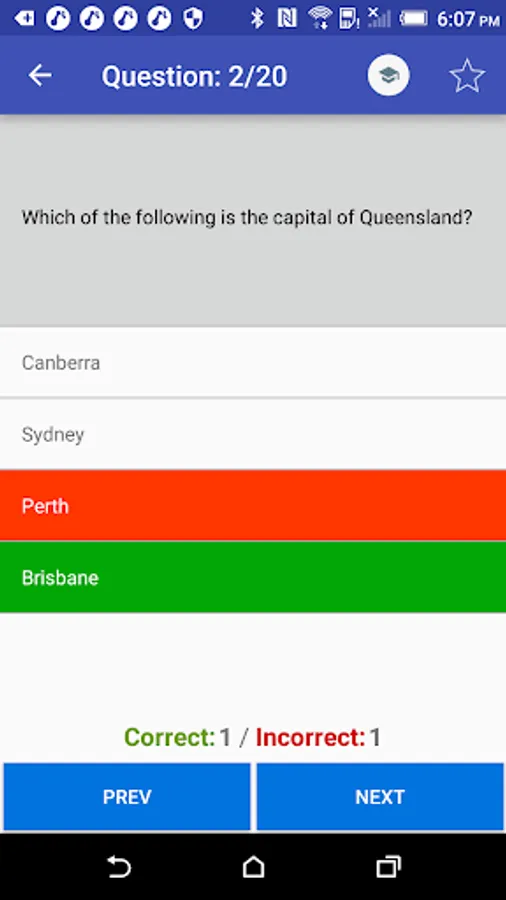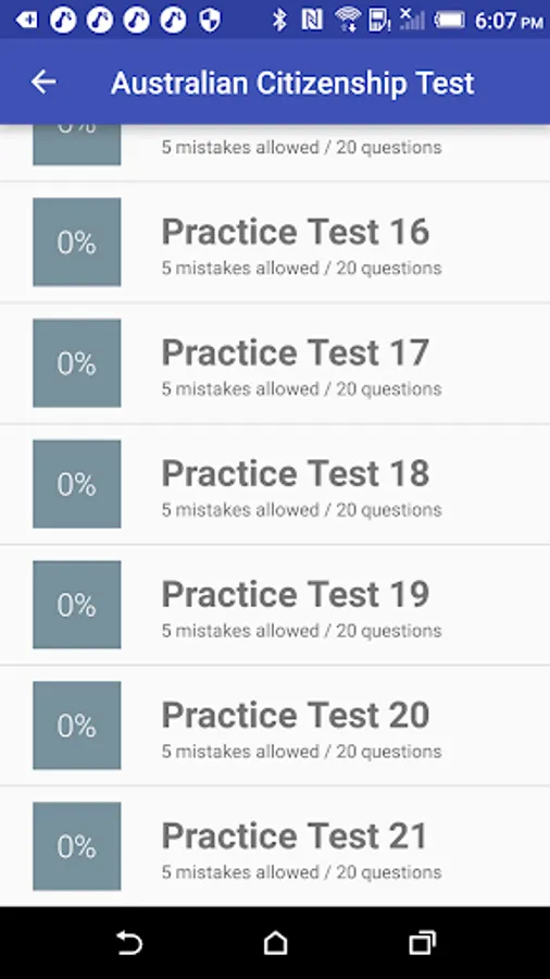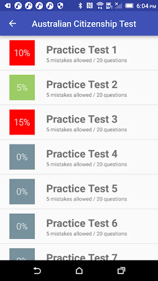 There are 20 questions in each test. You must answer 15 questions or more correctly to pass the test.