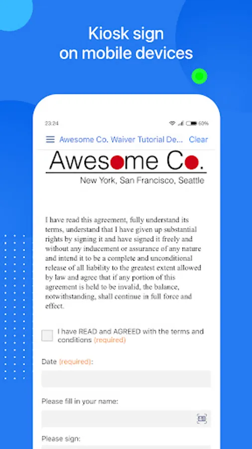 WaiverForever (www.waiverforever.com) provides an efficient, secure, and unified tool for kiosk businesses to customize electronic waivers for paperless signing and storage.