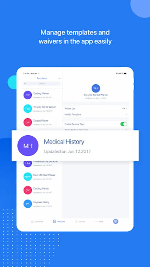 Envision digitizing the entire waiver process, from fully customizable waiver document creation to efficient instant organization and secure cloud storage.
