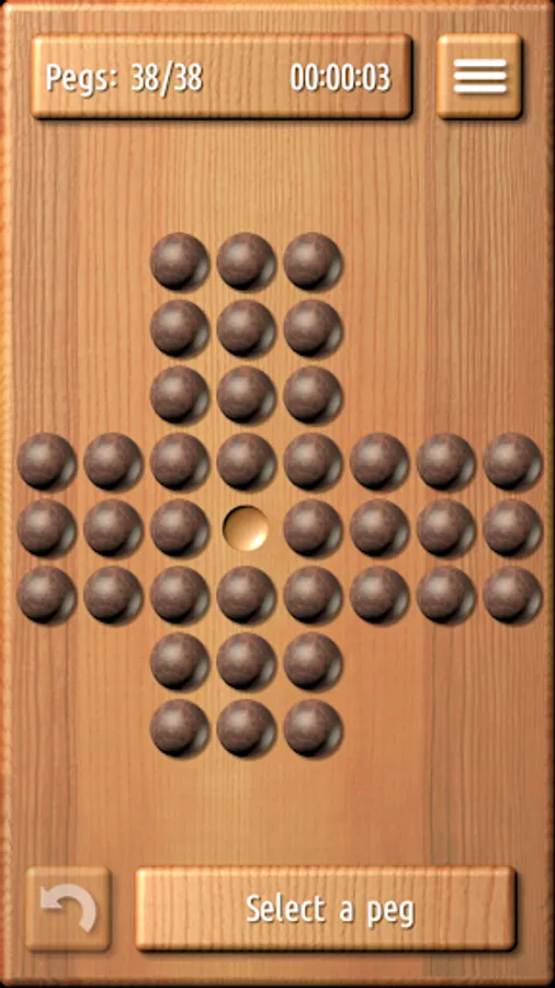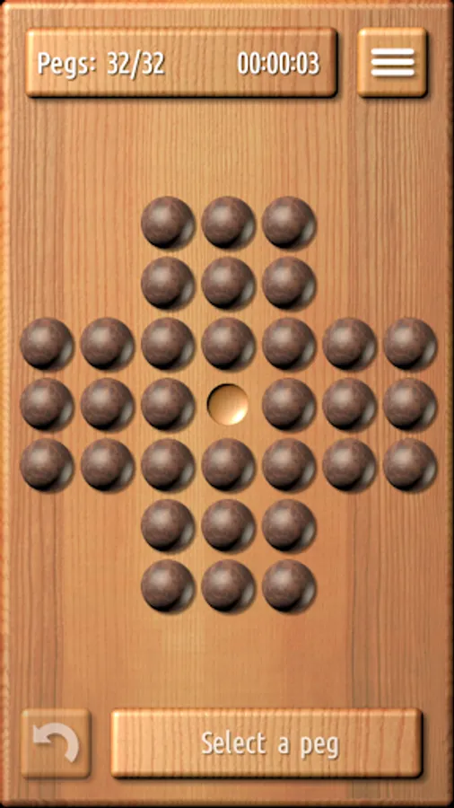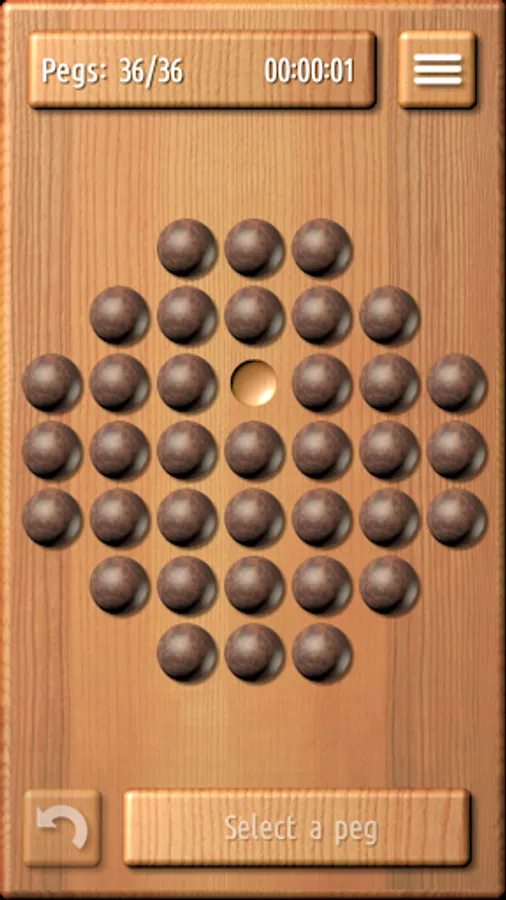 Aries Peg Solitaire is a classic, single player board game from the 17th century. The aim of the game is to remove all pegs except the last one. How to remove a peg? If you jump over a peg with another, you can remove it. In the beginning there is only one empty hole, and there are only four possible moves. As you remove the pegs, you will have more potential moves. If there are no more valid moves, the game ends. And remember, no diagonal moves!