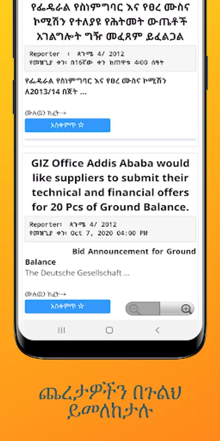 አሪፍ ጨረታ ከጨረታ መረጃዎች ባሻገር እለታዊ የቢዝነስ መረጃዎችን፣ የገቢዎች ህጎችን እና ዳዉንሎድ አድርገዉ ሊጠቀሙባቸዉ የሚችሉ የቫት ሪፖርት ማድረጊያ ቅጾችን ማንዋሎችን እና ሌሎችንም ፣ የኢትዮጵያ ንግድ ህግ ፣ የንግድ ምዝገባ ዝርዝር ፣ የአቅራቢነት መመዝገቢያ እና ለመመዝገብ የሚያስፈልጉ ነገሮች፣ የኮንስትራክሽን ህጎሽ/ዳዉሎድ መደረግ የሚችሉ/፣ በሃገራችን ያሉ ኮንትራክተሮች እና አማካሪዎች ዝርዝር እስከ አድራሻቸዉ፣ የኮንስትራክሽን እቃዎች ወርሃዊ ዋጋ ፣ የኮንስትራክሽን ማሽነሪዎች ኪራይ ዋጋ ፣ እና ሌሎችም የቢዝነስ መረጃዎችን ከመተግበሪያዉ ሳይወጡ ያገኛሉ።
