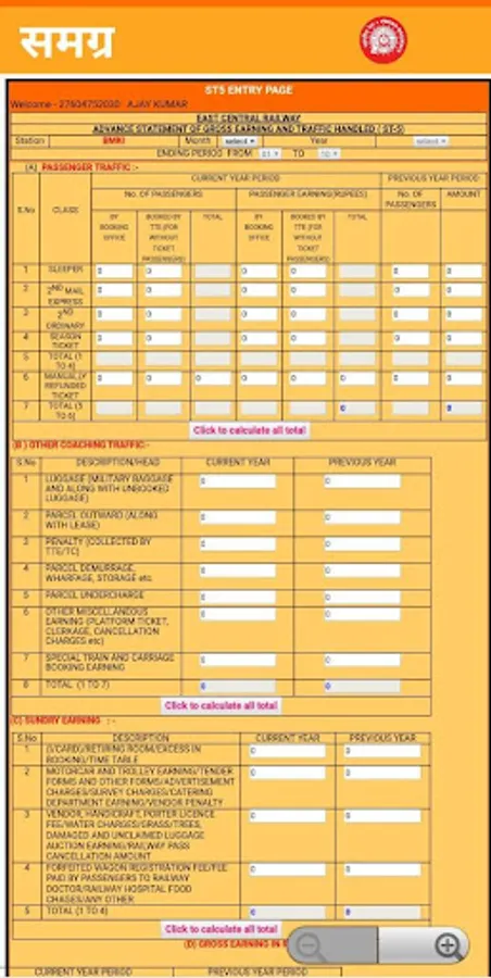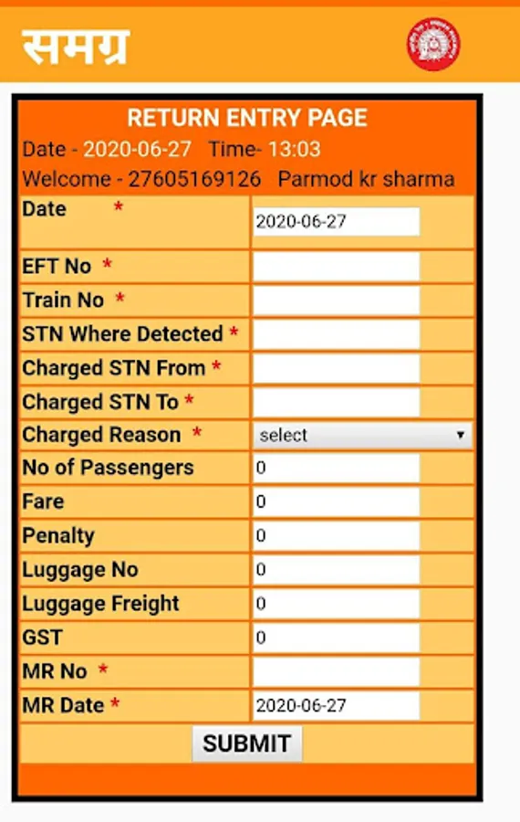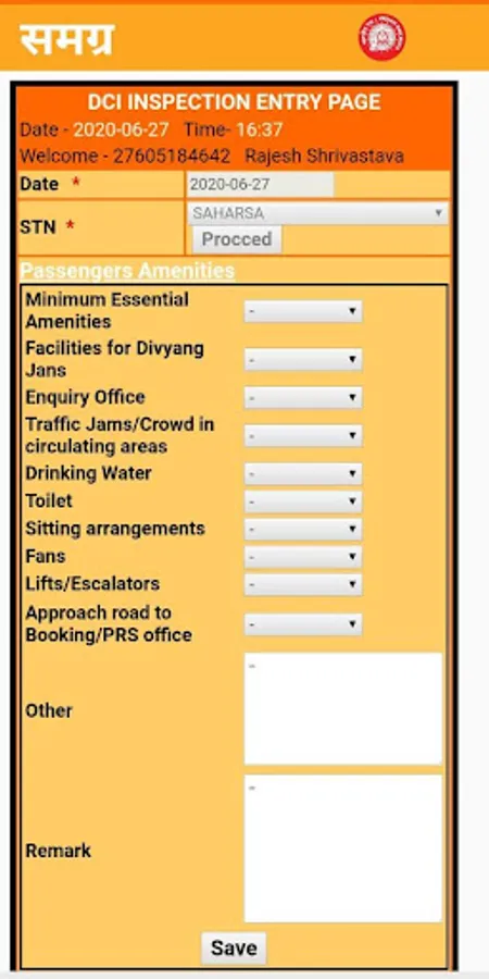 SAMAGRA is an in-house software application conceived, designed and developed by Samastipur/Sonpur Division, East Central Railway, free of cost; primarily for bringing expedition, transparency and ease of working for Railwaymen, in addition to information dissemination for general public at large. Comprehensive information related to all the stations of Samastipur/Sonpur division, some of the frequently used rules of Railways and Parcel rate calculator are few features open for all in this mobile application. At the same time, field staffs like TTEs, GSs, DCIs and CSs can use the application with their respective IDs and Passwords to enter information related to their daily working. A web application have also been developed to generate all sorts of above reports, along with office management data; having access to few admins.