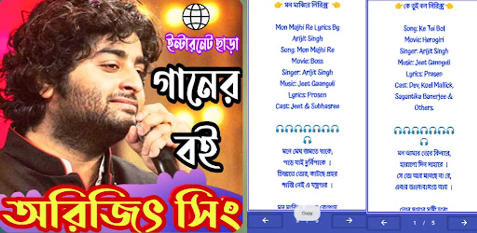 আমাদের এই অ্যাপে কলকাতা বাংলা জনপ্রিয় কণ্ঠশিল্পী অরিজিৎ সিং এর বাংলা গানের বই লিরিক্স খুব সহজেই উপভোগ করতে পারবেন।