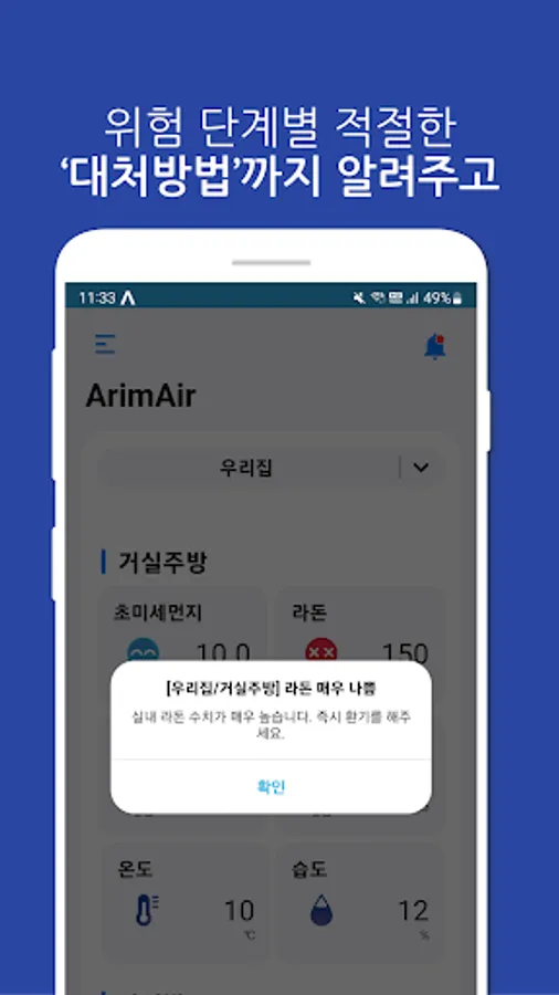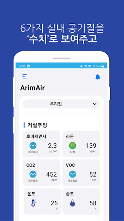 Arim Air simultaneously measures 6 indoor air factors including radon, VOCs, and carbon dioxide, which required specialized equipment, and tells you how to deal with each risk.
