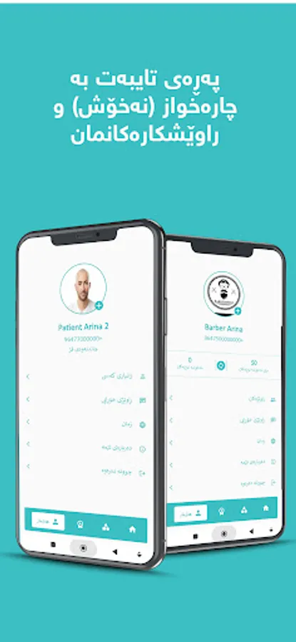لەم ئەپڵیکەیشندا بەکارهێنەران دابەش دەبن بۆ چوار لقی سەرەکی کە پێکهاتوون لە (چارەخوازانمان،پزیشکی ئارینا،راوێژکارانمان،کەسانی ئاسای).