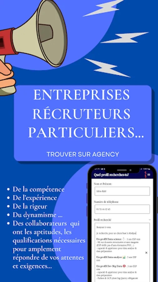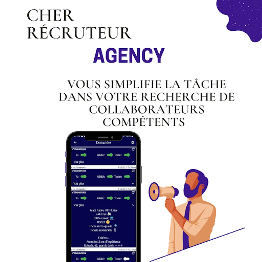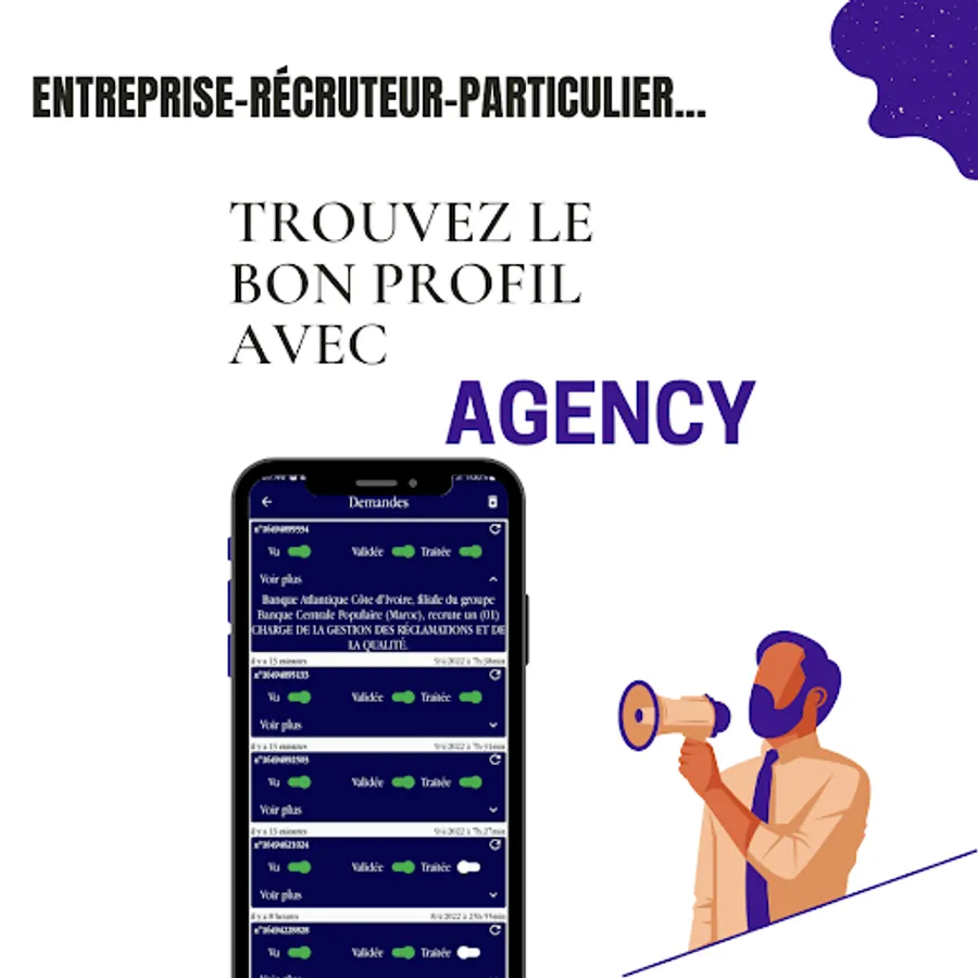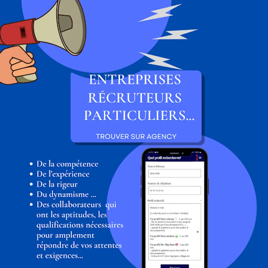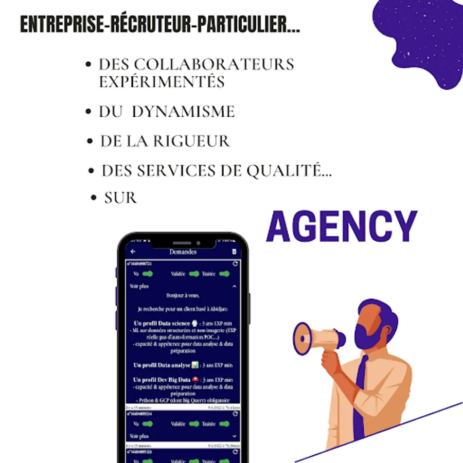 ✅ You are a company, a recruiter or an individual, Agency finds you the best profiles. Are you looking for a particular skill? quality service ? No more wasting time on CVs, interviews, post...
