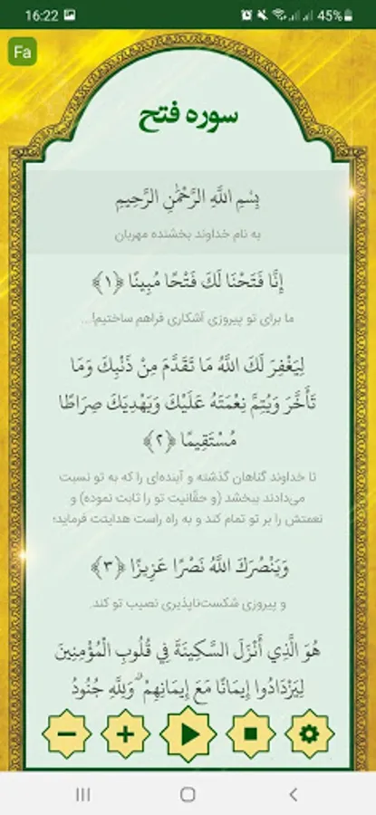 The first verse of the sura concerning a clear conquest (or victory) and the verse eighteen concerning the Pledge of al-Ridwan are well-known verses of Sura al-Fath.