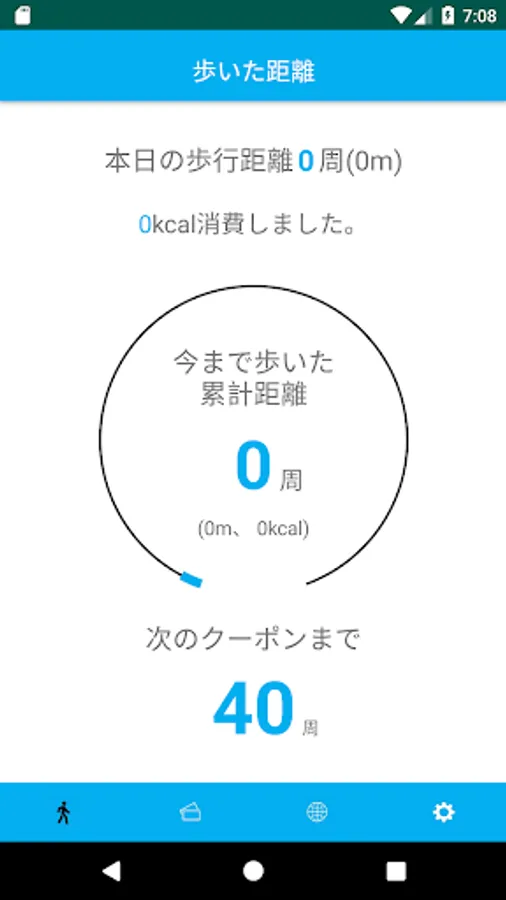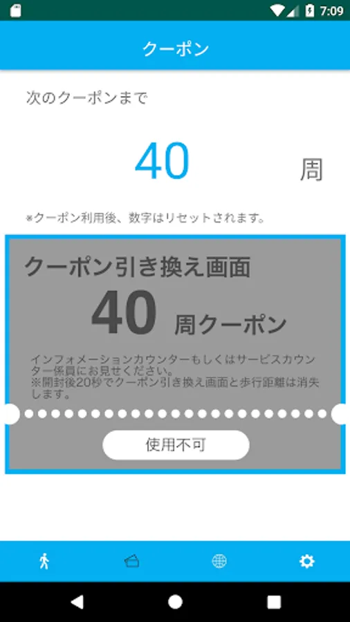 ・ The total walking distance, the remaining walking distance until the coupon is obtained, and the graph are displayed.