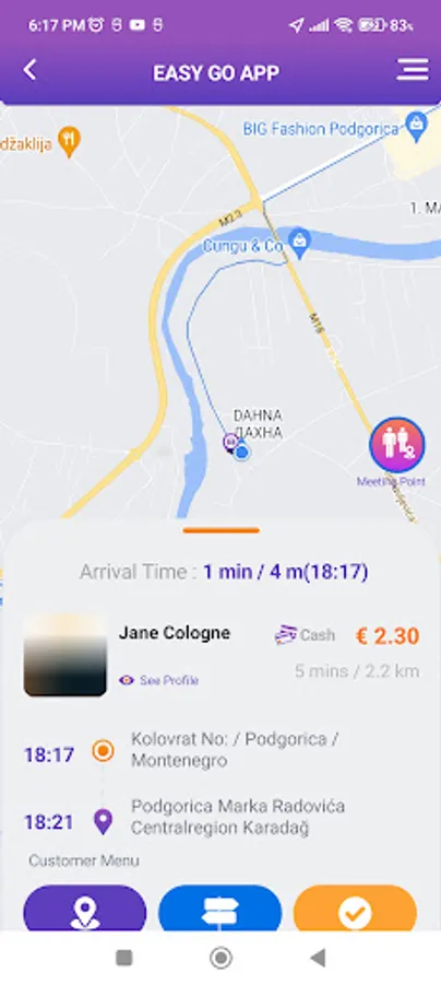 Anyone can easily open a call for taxi service from Easy Go App. Drivers of legal transport companies in Montengero can register with their documents. After their profiles are approved, they can see the travel requests from the customers and carry passengers.