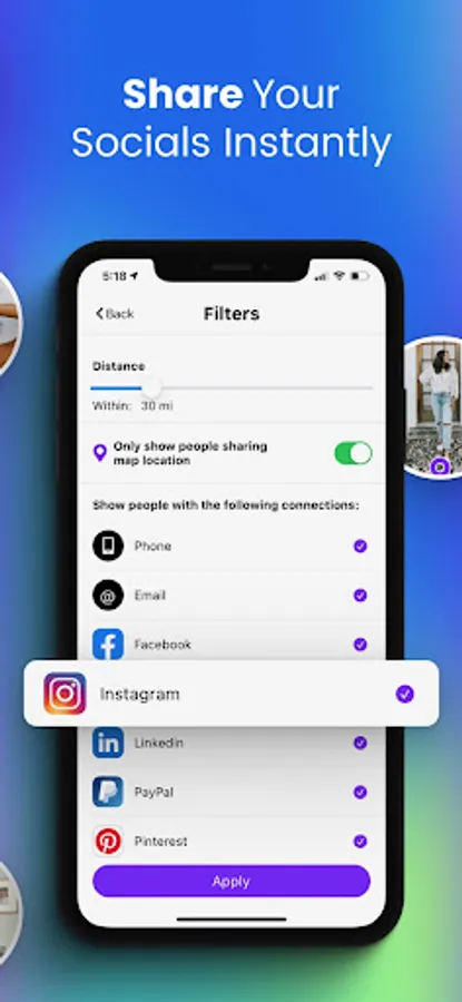 * Control the profiles seen by customizing the distance between you and other users.