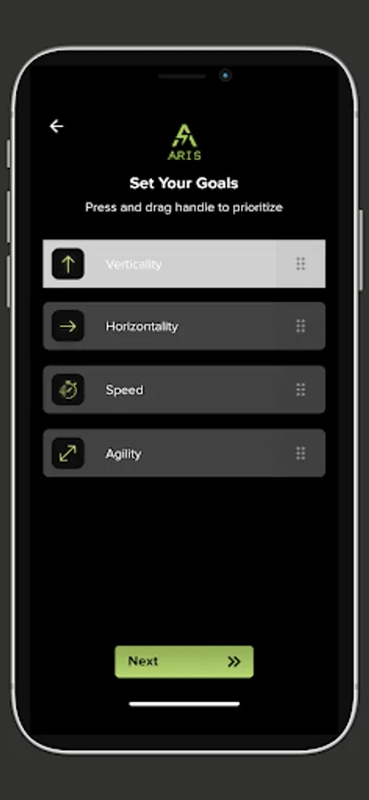 Train to gain. Set a gains date. Select and prioritize your goals: Vertical Jump, Horizontal Bounds, Agility & Speed and let the app know how many session per week you can train.
