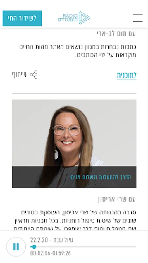 אפליקציית רדיו מהות החיים משדרת מוסיקה ותכניות 24 שעות ומביאה אליכם ערוץ תקשורת איכותי ומעורר מחשבה.