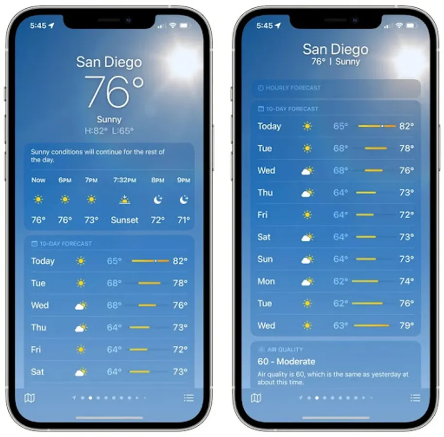 - Hourly and weekly forecastle, especially hourly weather item for next 7 days.