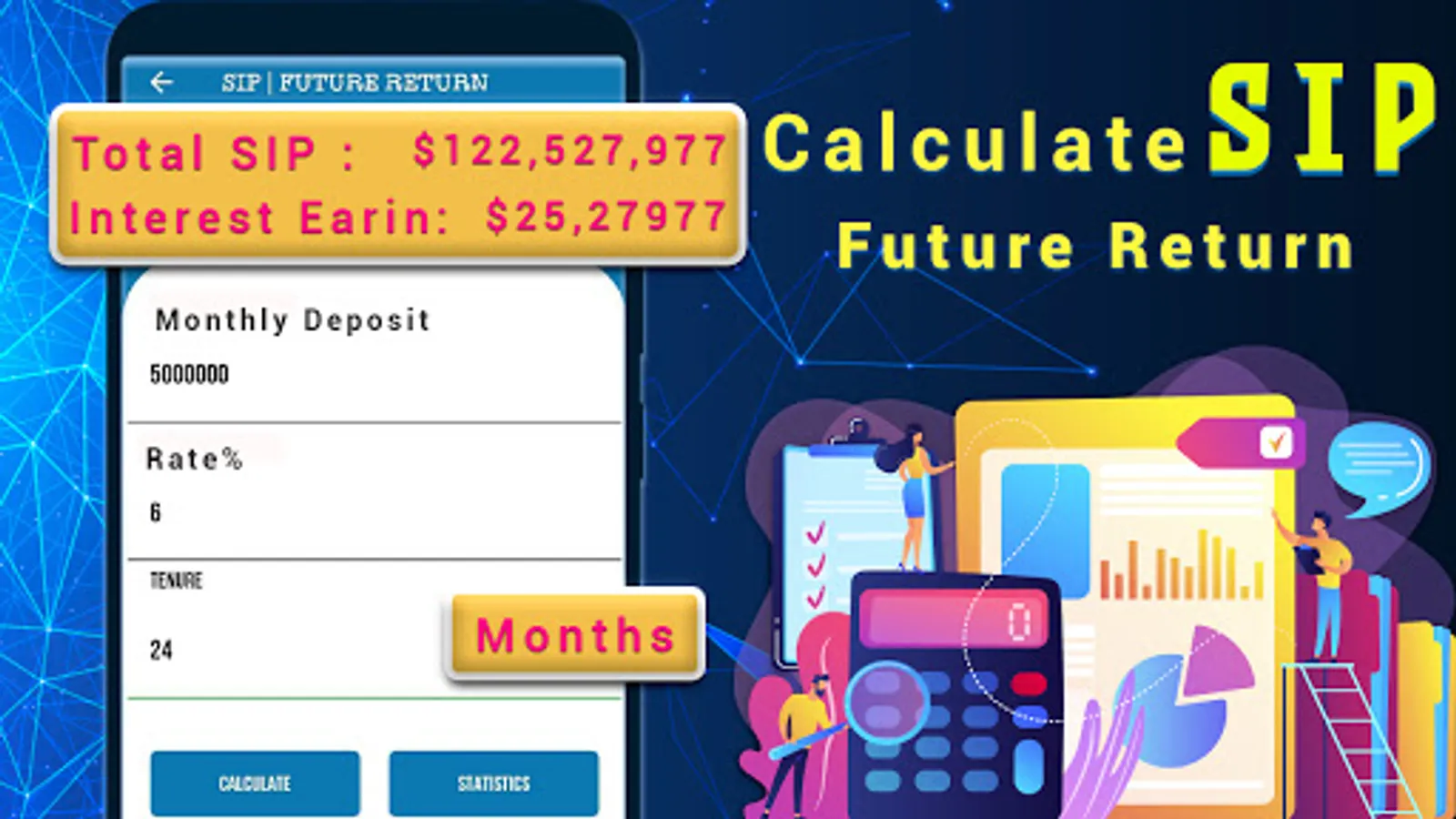 SIP calculator allows you to calculate the return on mutual fund investment. It will help you to calculate future value of your monthly investment made through SIP calculator. Just you need to type the monthly deposit amount which you have deposited in the bank or some other post offices & the rate of the bank or post offices & the tenure it will gave you results with statistics & graph