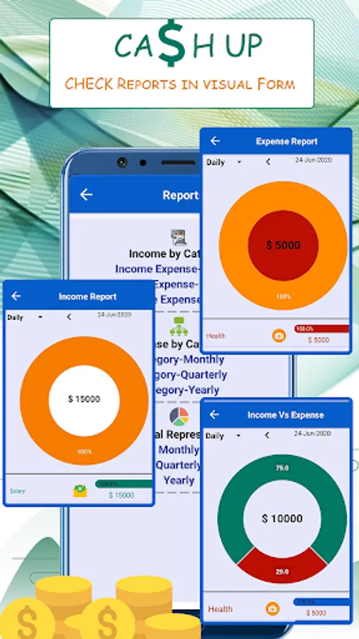 Cash Up is a Personal finance manager and money manager app, helpful to the financial planner for budget and expense tracking, calculating income, managing daily expenses budget planning and also in extracting reports as per requirement.