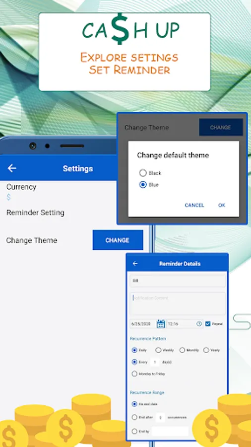 Change Theme: Change the theme of money saving app, you have two options select what you like