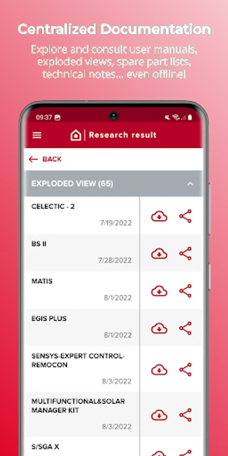 - Quickly access product documentation, such as: user manuals, exploded views, spare part lists, technical notes;