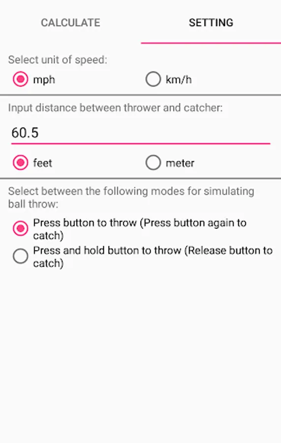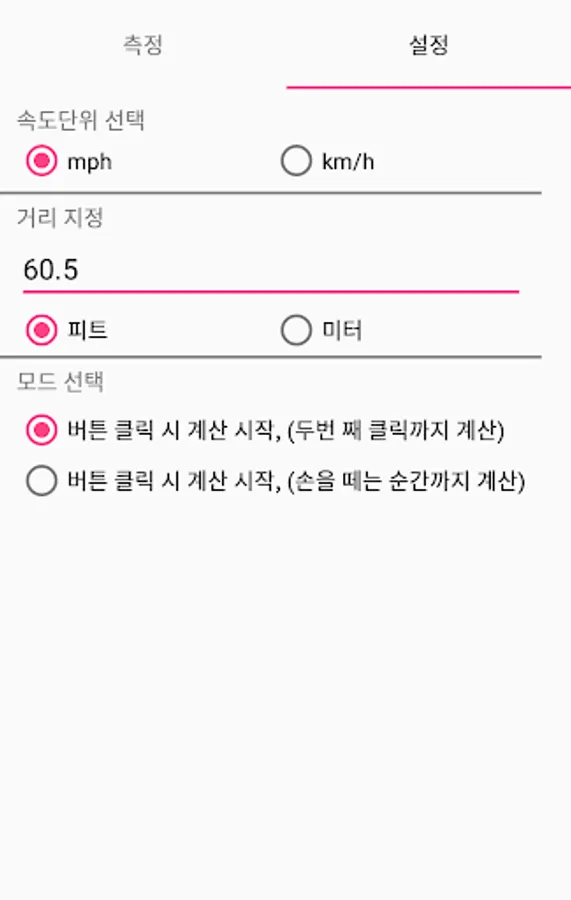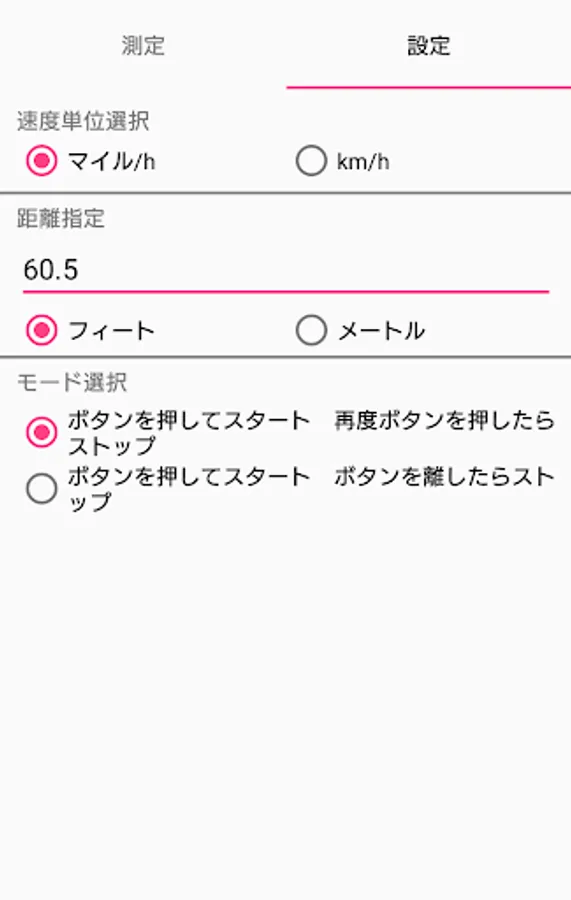 The unit of distance can be specified in feet or meter.