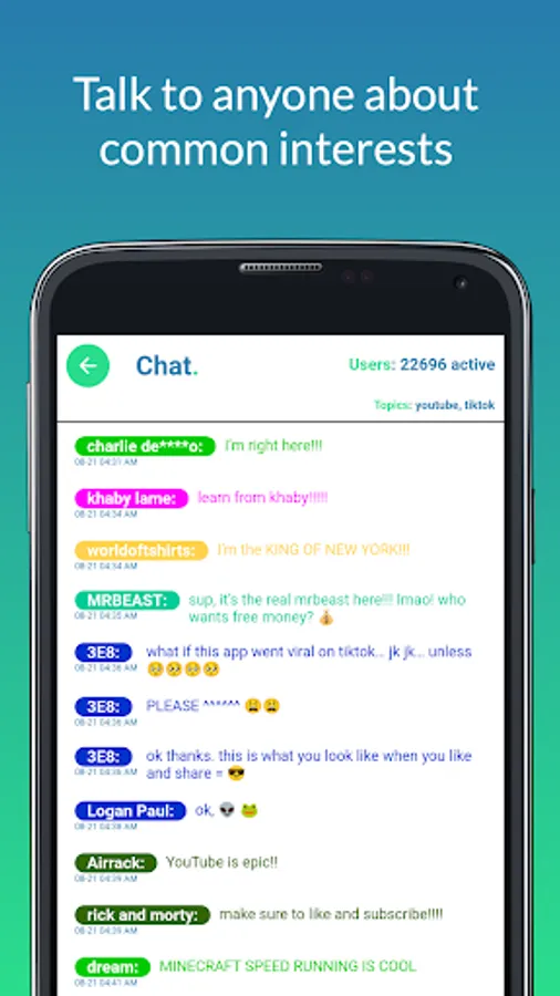 Topic Based Chat lets you talk to anyone with the same chat topic. First,